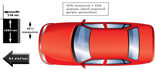 Автомобиль врезается в деформируемый барьер с отступом на скорости 64 км/ч (40 миль/ч).