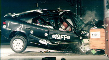 Французская "бабочка" оказалась слишком хрупкой. Передняя часть салона была смята, водительскую дверь заклинило, поперечная балка внутри передней панели отошла от кузова. Хотя подушка защитила голову водителя, оценка была снижена за слишком большое перемещение руля - он оказался в опасной близости от головы. Коленями водитель ударился о блок предохранителей и о детали рулевой колонки, а смятый пол и сильно смещенная назад педаль тормоза не оставили пространства для ступней. При боковом краш-тесте голова манекена с силой ударилась о среднюю стойку кузова.