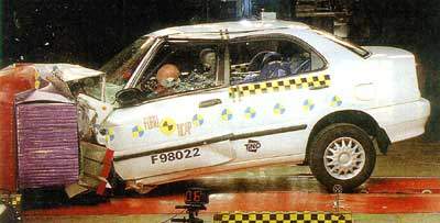 Baleno не оборудован подушкой безопасности водителя, входящей в стандартную комплектацию автомобилей, продаваемых на рынке стран Европейского союза. По этой причине комиссия Euro NCAP приняла решение испытать это автомобиль без такой подушки. При лобовом ударе датчики манекена зафиксировали удар такой силы, что в реальности полученные травмы стоили бы водителю жизни. То же касается и нагрузок на грудь при боковом ударе – оценка в виде двух звездочек указывает на неприемлемо высокую степень риска. Автомобиль не сможет соответствовать критериям оценки новых автомобилей в испытаниях на боковой удар, которые собираются принять. Что касается травмоопасности в отношении пешеходов, то две из трех зон бампера соответствуют предложенным требованиям.