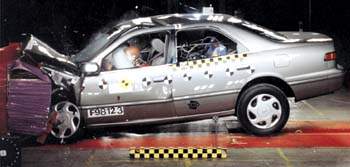 При боковом краш-тесте Toyota показала себя превосходно - если бы не контакт торса манекена с дверной ручкой, соответствующий силуэт был бы целиком окрашен в зеленый цвет.