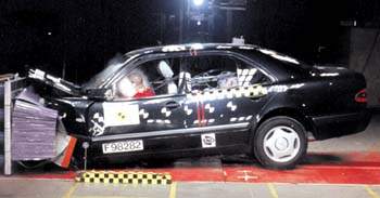 Mercedes Е200, к вящему неудовольствию Штутгарта, так и не стал лидером этой серии, хотя и к аутсайдерам, конечно, не относится. Мерседесовцы тоже предоставили для повторного тестирования доработанный автомобиль - с усиленной сваркой панелей пола в районе ног водителя. Правда, и после повторного теста сварные швы пола разошлись - как и в случае с BMW, причиной послужило вмятое в брызговик колесо.