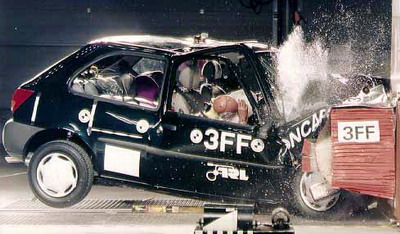 По результатам испытаний на лобовой и боковой удары автомобиль Ford Fiesta получила оценку в три звезды. Все новые требования по обеспечению безопасности при лобовом ударе были выполнены, за исключением смещения назад рулевого колеса. Основные проблемы, выявленные в ходе лобового удара, связаны со смещение элементов конструкции, хотя пассажирский салон подвергся незначительной деформации. Датчики зафиксировали нагрузку на нижние конечности, поэтому конструкторам необходимо обратить внимание на зону, потенциально опасную для коленных суставов. Исходя из результатов проведенных испытаний на боковой удар выяснилось, что дальнейшие действия по повышению безопасности автомобиля должны быть направлены на уменьшение нагрузки на ребра и таз пассажиров.